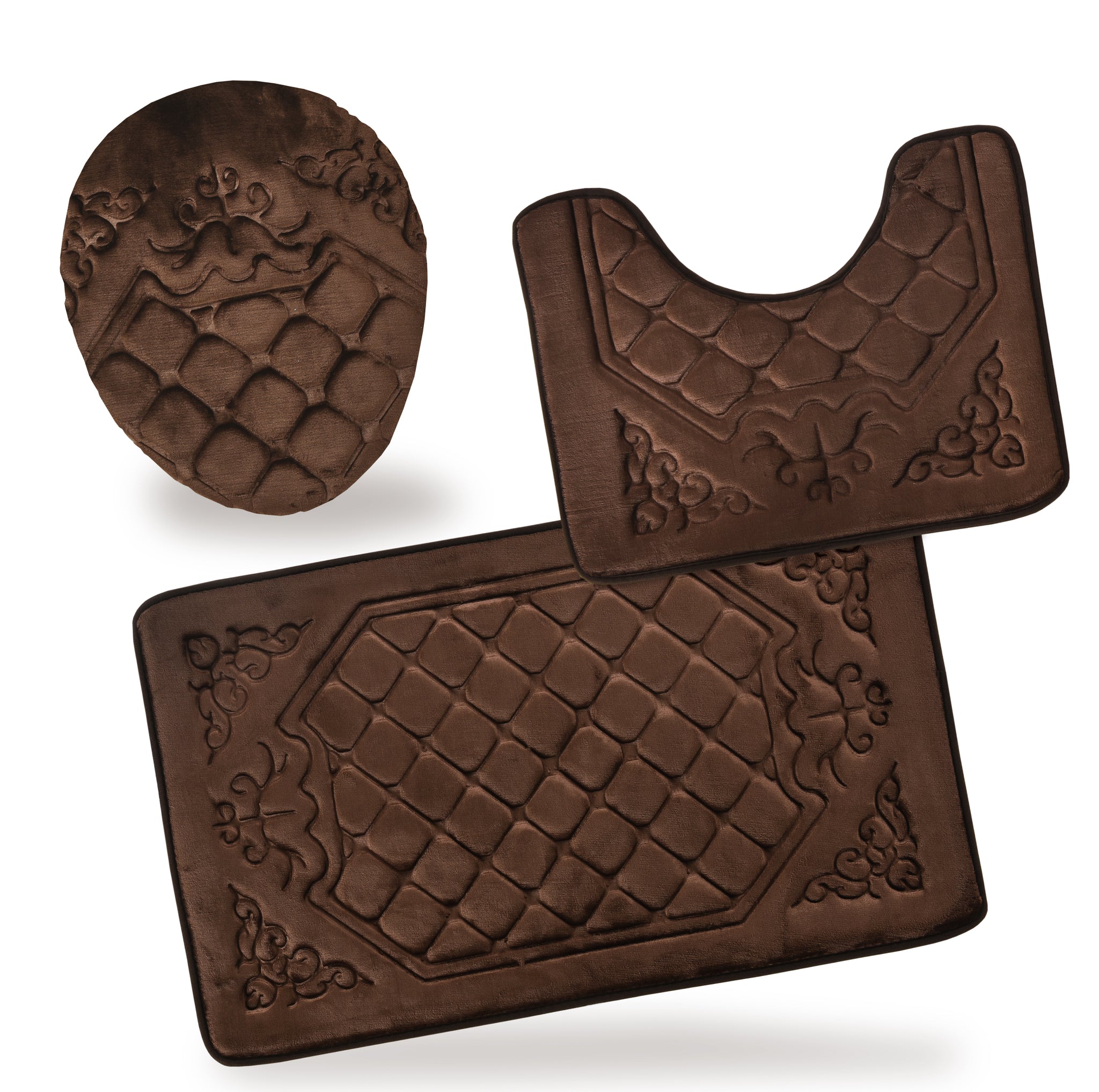 • 3 Piece Memory Foam Bathroom Rug Set For your Comfort.