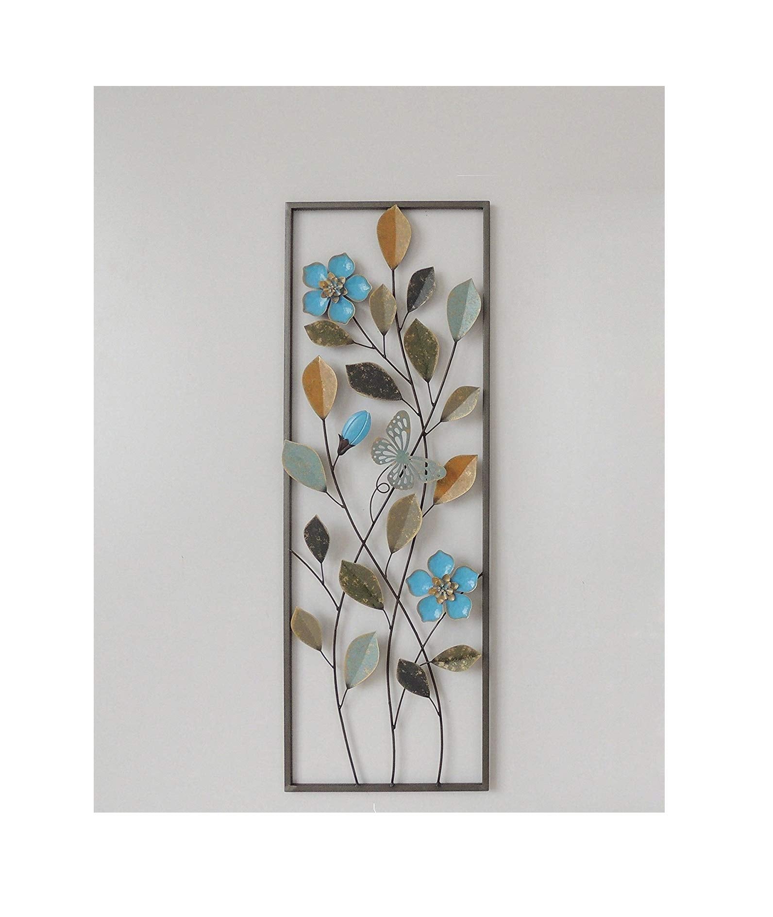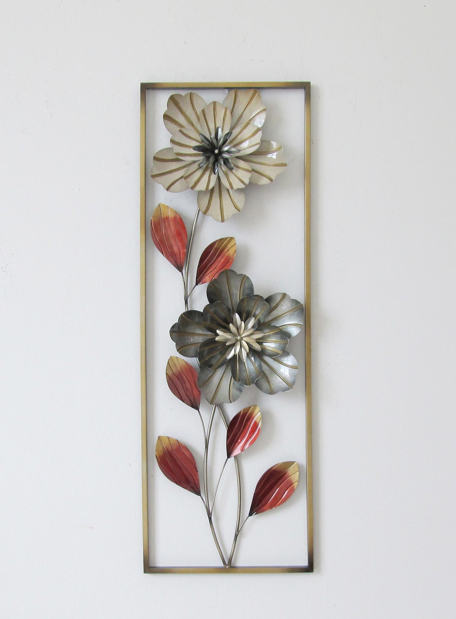 New All American Collection Flower and Leaves Aluminum/Metal Wall Decor with Frame 12"x36"